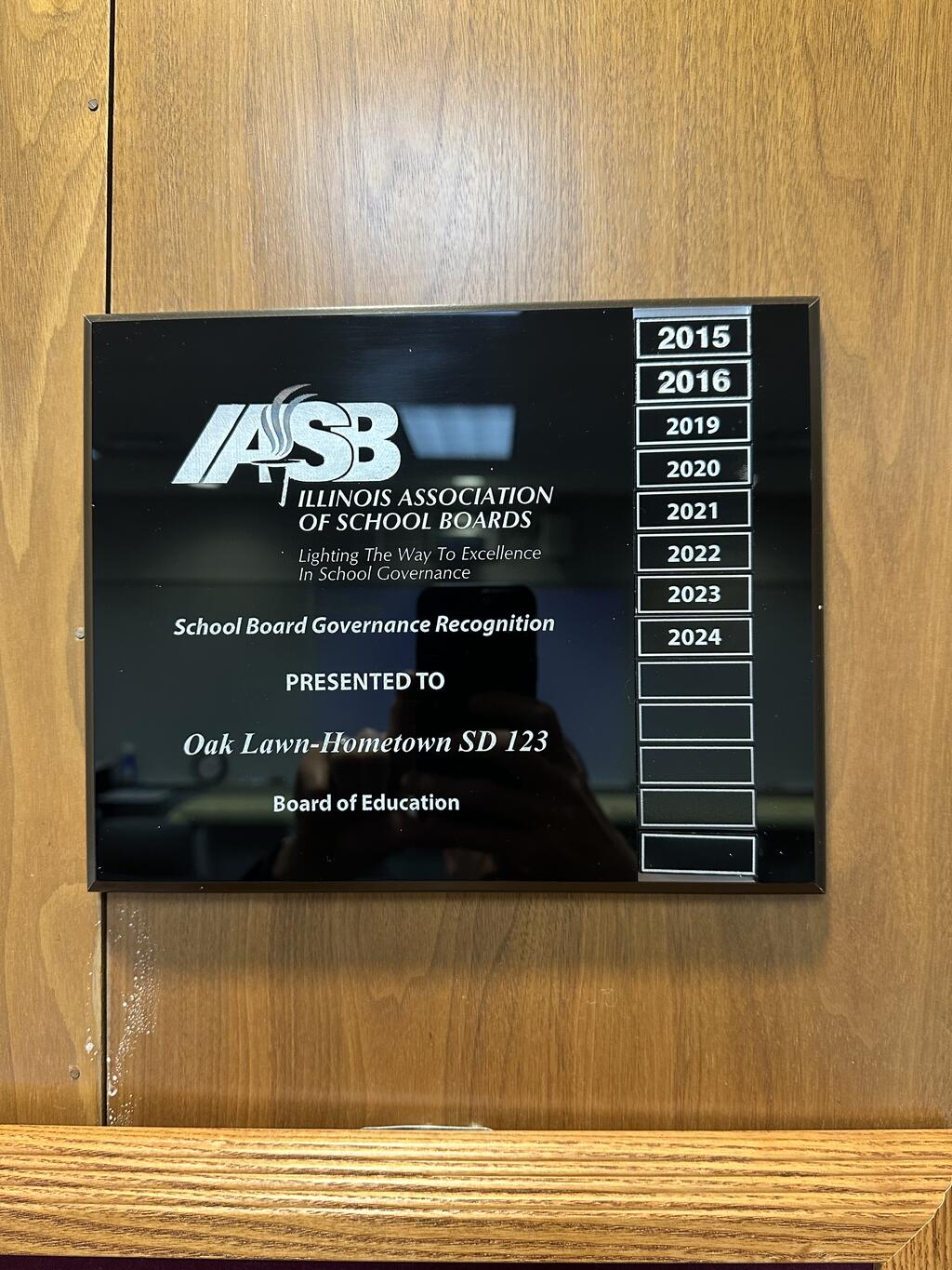 The Oak Lawn-Hometown School District 123 Board of Education was one of only 45 school districts statewide to be awarded the Illinois Association of School Boards (IASB) Recognition for Governance.