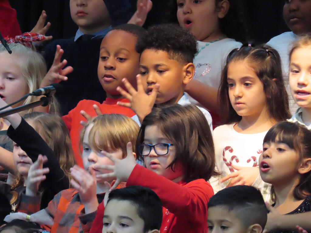 Each elementary school had its chorus, kindergarteners, first graders, and second graders sing and dance to seasonal songs. Some tunes were upbeat and fun while others were uplifting and shared a message of peace to the audience.
