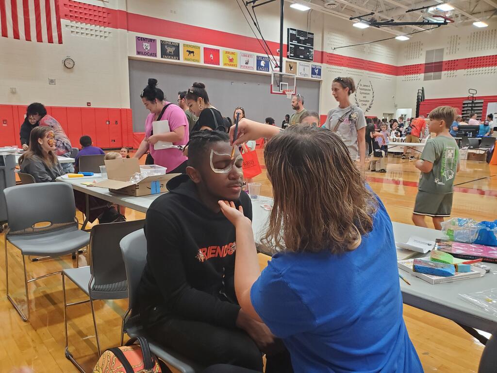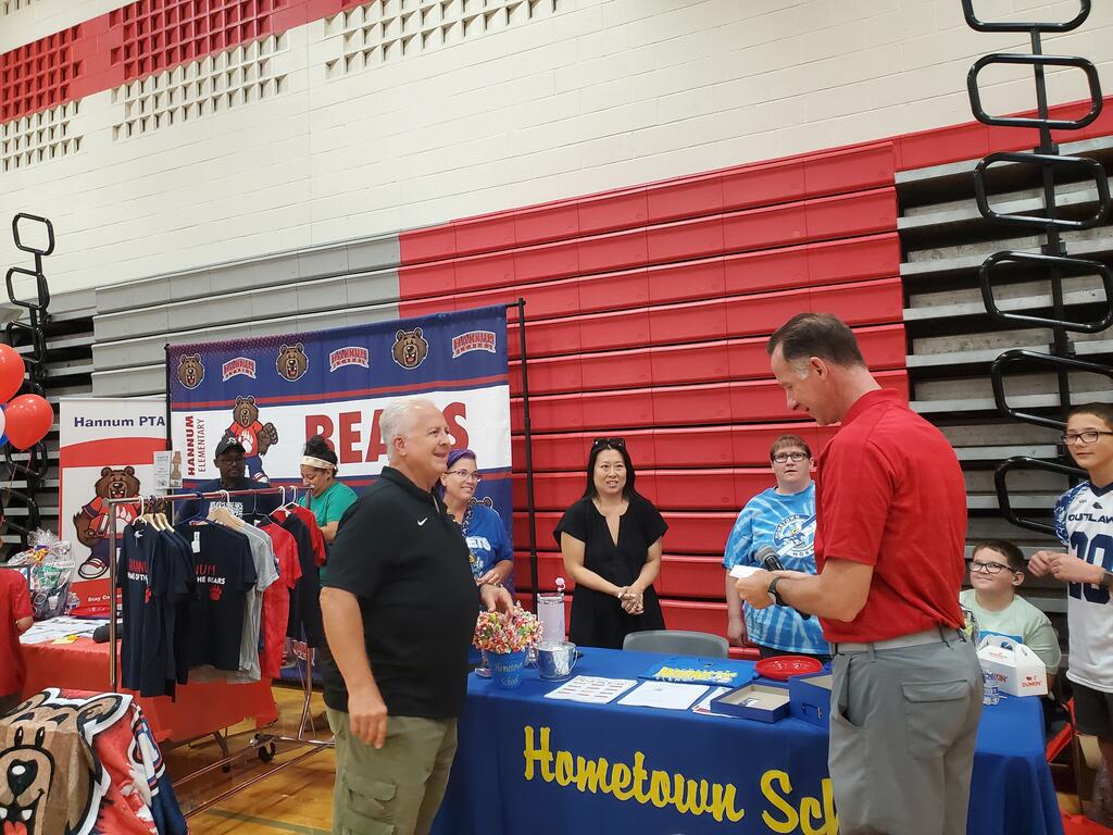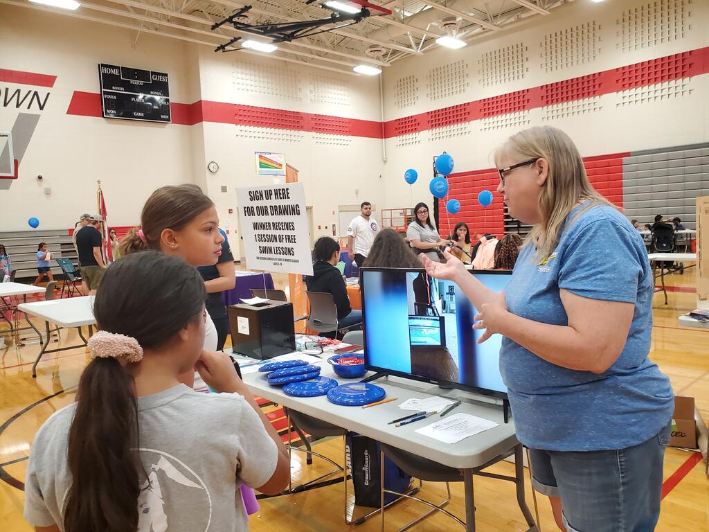 Community partners set up tables in the gym to share information about the resources available to families in the area. When attendees visited the vendors, they could be entered in a prize drawing at their school’s PTA/PTO/PTSA table to win a basket full of school spirit wear.