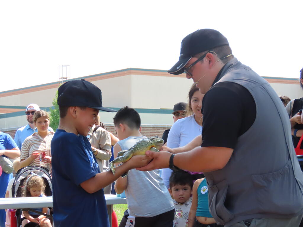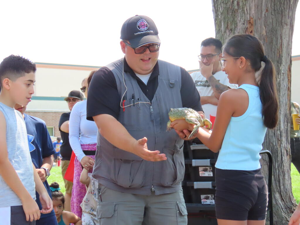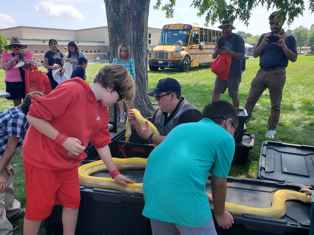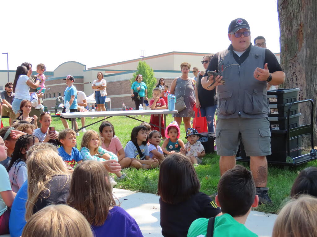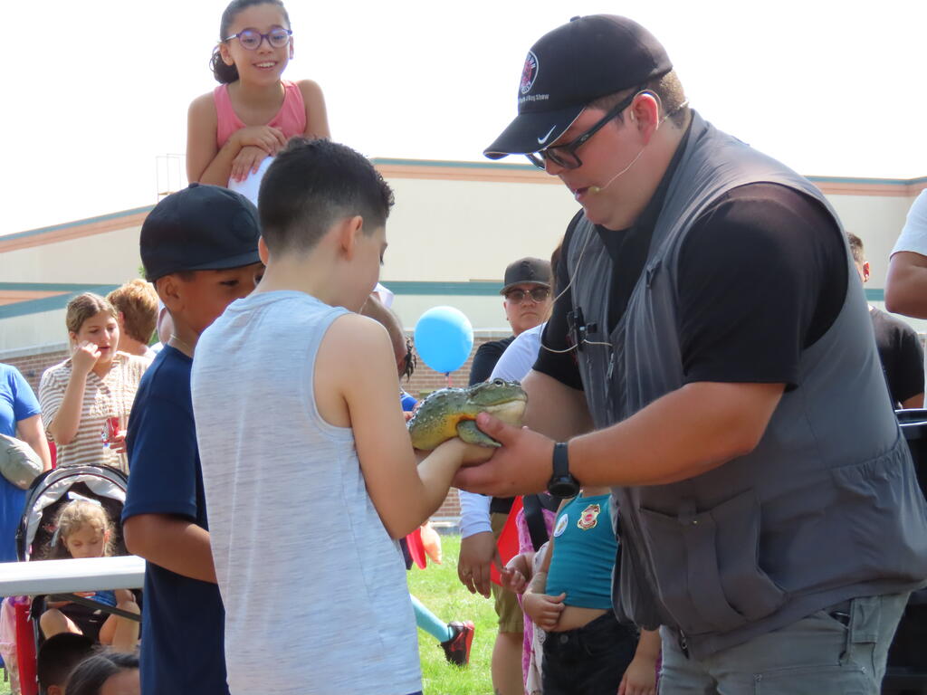 Families watched in wonder as Tim Hannig performed thrilling magic tricks in the OLHMS cafeteria before heading over to the lawn to see the reptile show from Crosstown Exotics. Lucky volunteers could even pet the turtles, lizards, snakes, and other reptiles before dancing to the tunes of Gincy Hartin and jumping in the inflatables.