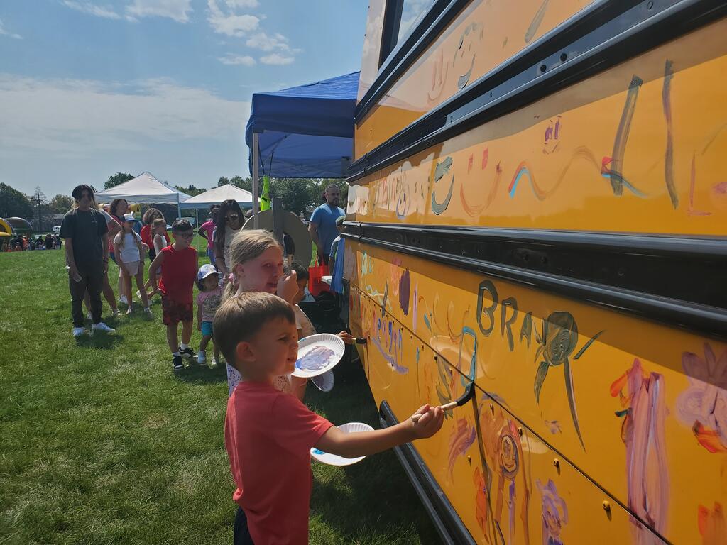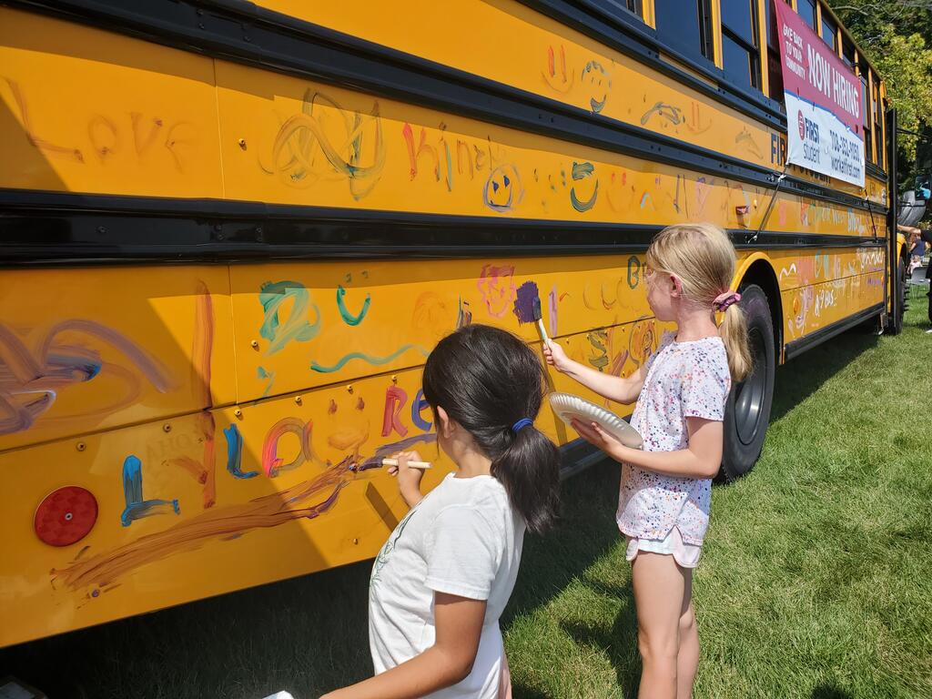First Student also provided the opportunity for families to paint a school bus with creative designs or their names.