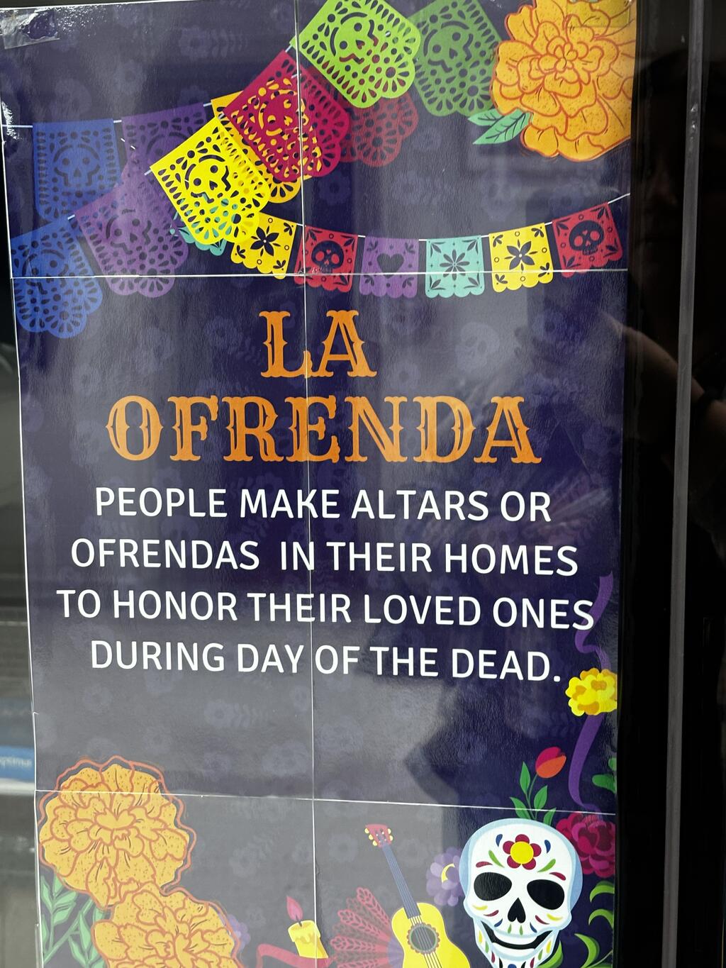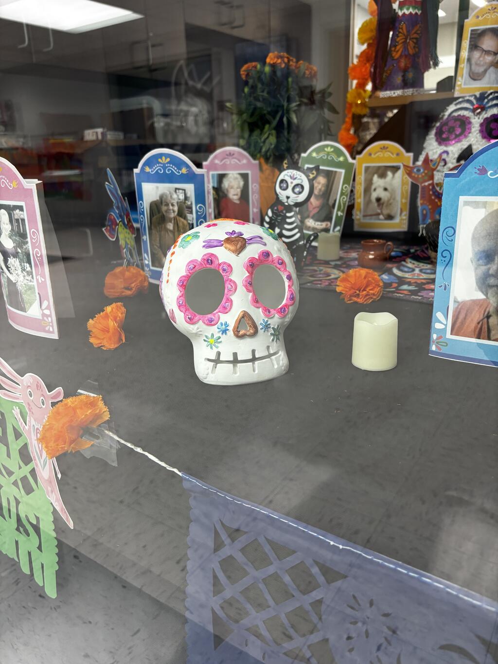 Mrs. Guzman started this special tradition last year, and it has continued to grow. This year, even more staff members have added photos and memories of the people they love and miss. The ofrenda is decorated with pictures, marigolds, candles, and other traditional items that represent love, remembrance, and family connection.