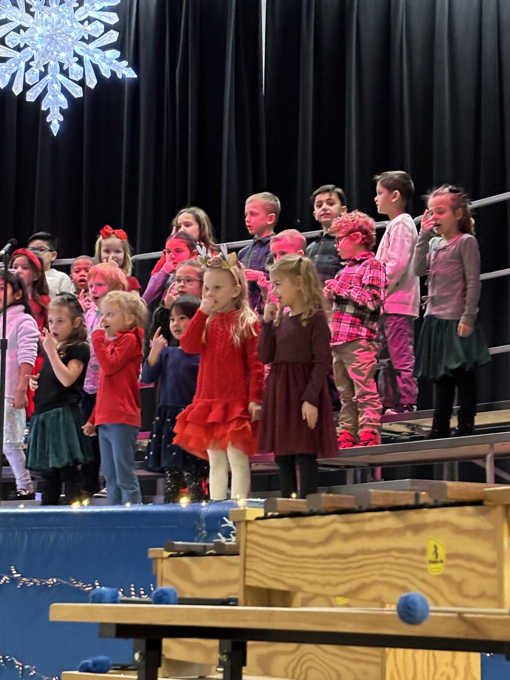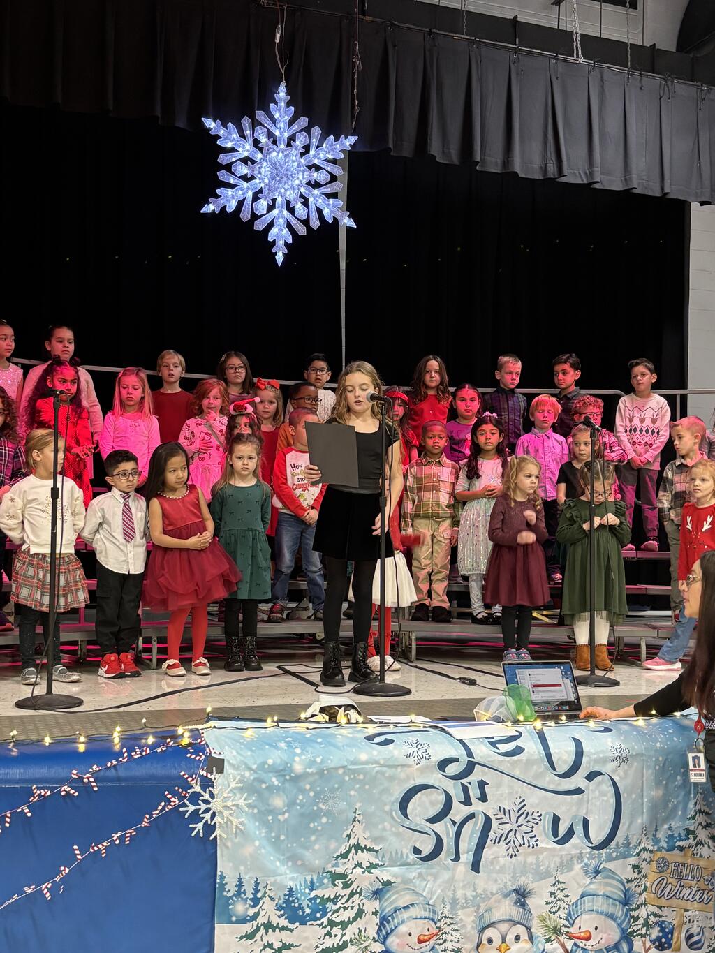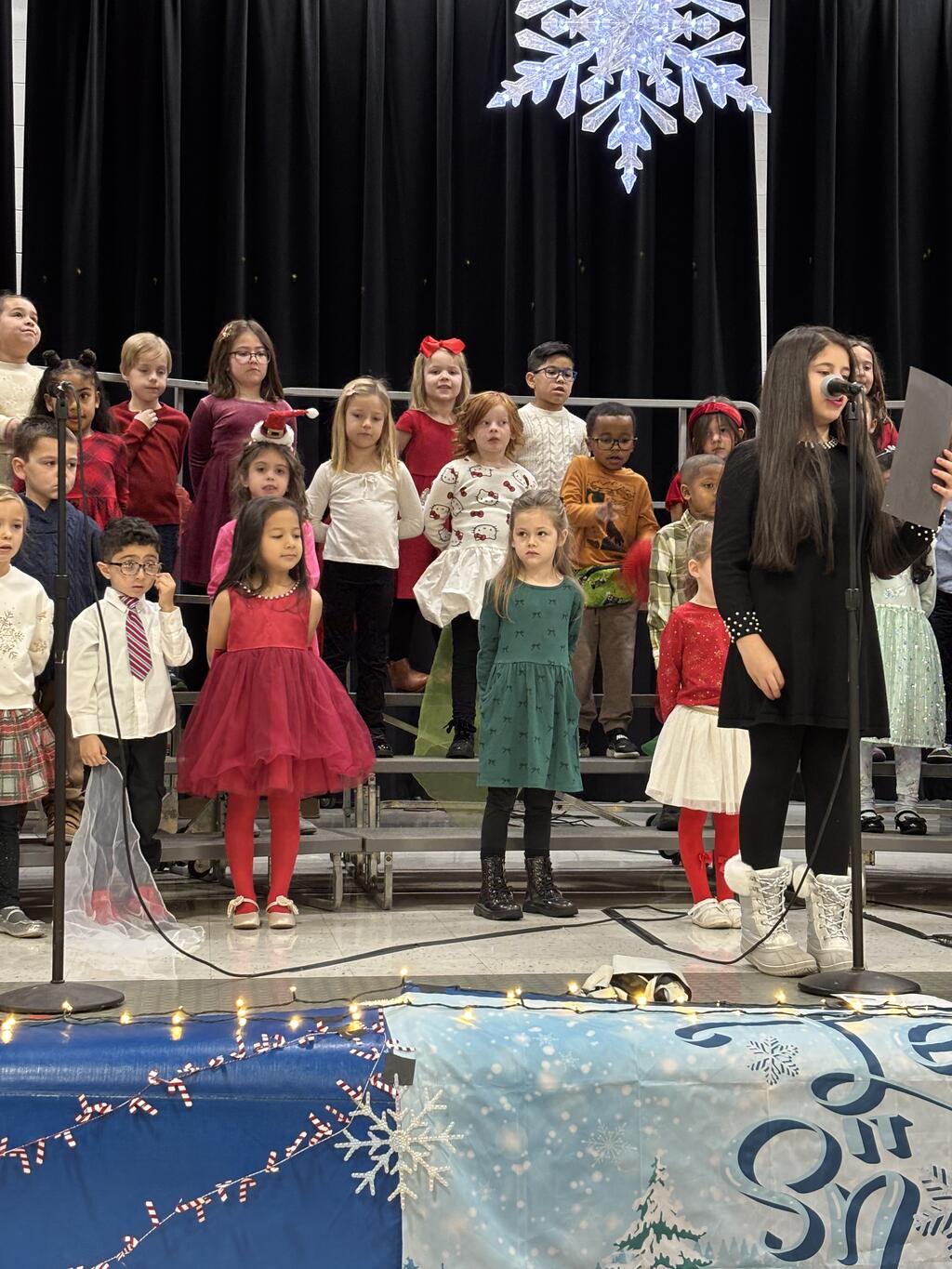 On Wednesday, December 10th, Kolmar’s K–2 students and choir members put on a holiday concert that truly felt like the start of the season. The kids showed up in their nicest outfits, looking excited and a little nervous in the best way. Once the music began, though, they lit up the stage. Each group performed three songs, and it was clear how much work they had put into them. Some kids added fun touches with instruments or little dance moves, and you could see how proud they were. At the end, all the students came together for a big finale that had families smiling, recording videos, and soaking in the moment. A lot of credit goes to Mrs. Brodsky, who spent weeks helping the students learn the songs and understand the music behind them. You could tell she put her whole heart into it—and the kids did too. The concert was full of joy, excitement, and that cozy winter feeling. It was a wonderful way to start the season and celebrate all the hard work of Kolmar’s young performers.