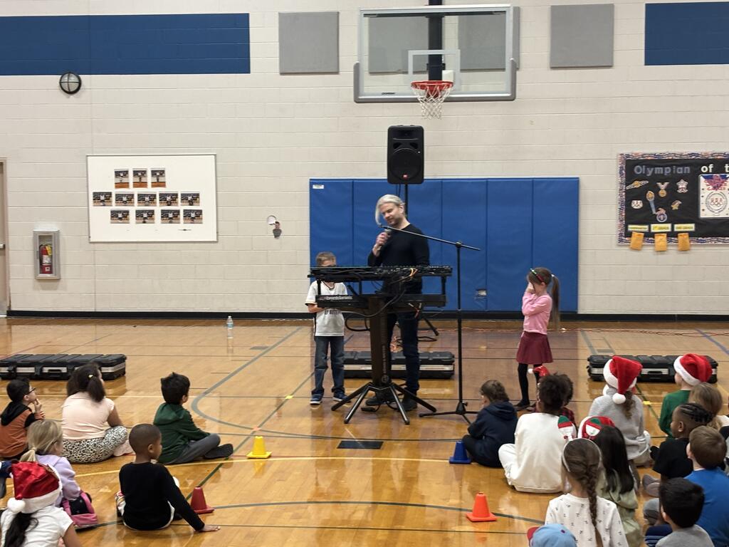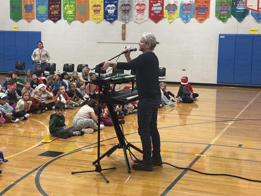 During the assembly, Brent showed students how he uses virtual music technology to create songs. He explained and demonstrated tools like synthesizers, keyboard samplers, and other music software. What made the assembly extra exciting was how interactive it was. Brent invited student volunteers to help him create music right on the spot.