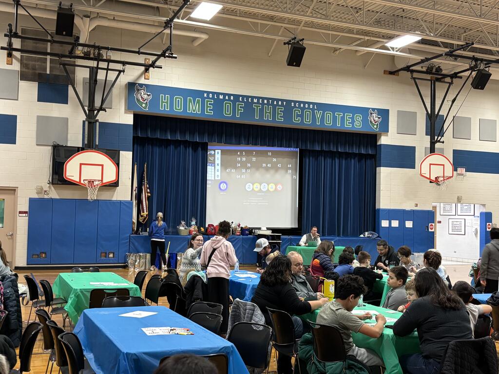 On Thursday, February 26th, the PTA hosted Kolmar’s annual BINGO Night! Families showed up ready to enjoy a fun evening together during the week. Mr. Creech enthusiastically called out the numbers, and the gym quickly filled with excited shouts of “BINGO!” as players competed to win prizes.