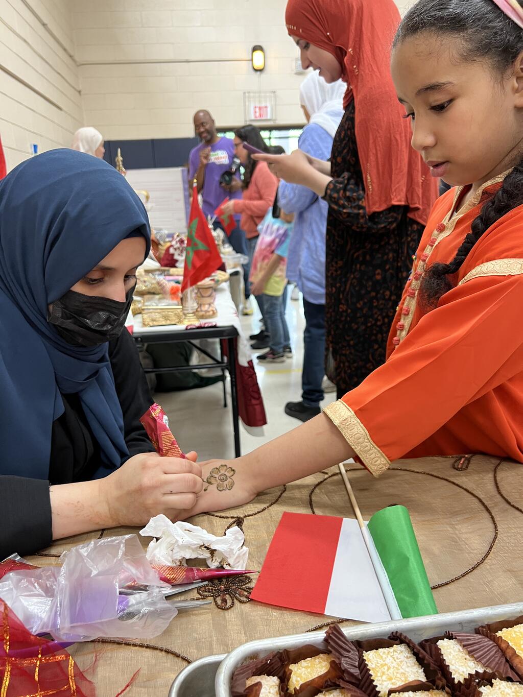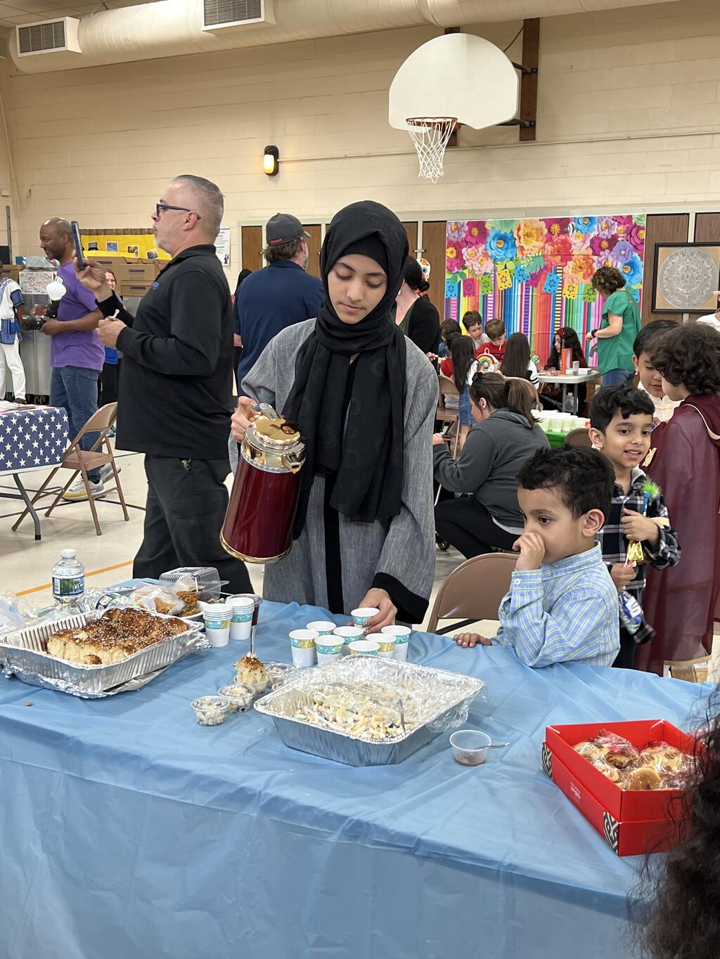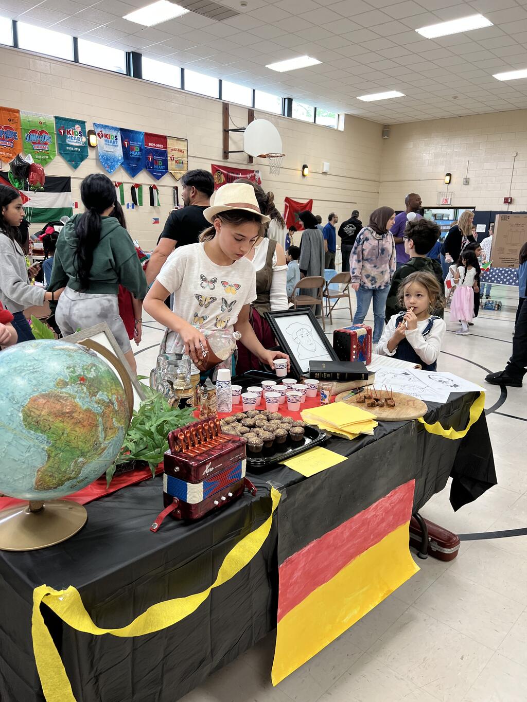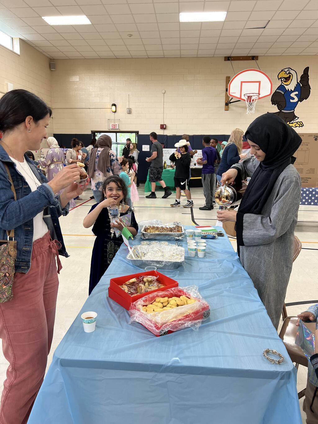 Fourteen different countries were represented by Sward families at the PTA event. Familes volunteered to share their culture with the Sward community. They brought homemade food, shared what special clothing/jewlery is worn in their country, artwork along with historical artifacts. Families also showcased cultural dances and Mr. Hartin performed while students danced along. Students and families got to taste food from around the world and could get a henna tattoo, there was even a marachi band, and a bagpiper! There were special performances from two Dabka dance groups from Andrew and Stagg high schools as well as Mrs. Glikis and her Greek dance group. This was truly a unique event and all who attended had an awesome time. Special thanks to the Sward PTA for organizing this amazing event for the kids and their families.