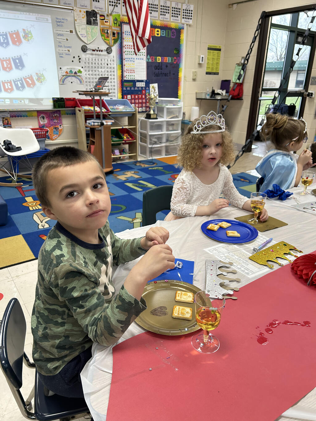 On Friday, March 22nd the Kindergarten hallway at Sward School was turned into a royal kingdom. The three Queens of the Sward Kingdom: Queen Jensen, Queen Alvarado and Queen Derus welcomed all their princes and princesses for a most formal Kindergarten Royal Ball. Students dressed in their fanciest attire for the special occasion. As part of the culmination of their most recent CKLA unit about royalty, students enjoyed a fun-filled day with a fancy royal snack and dancing. The celebration was enjoyed by all.