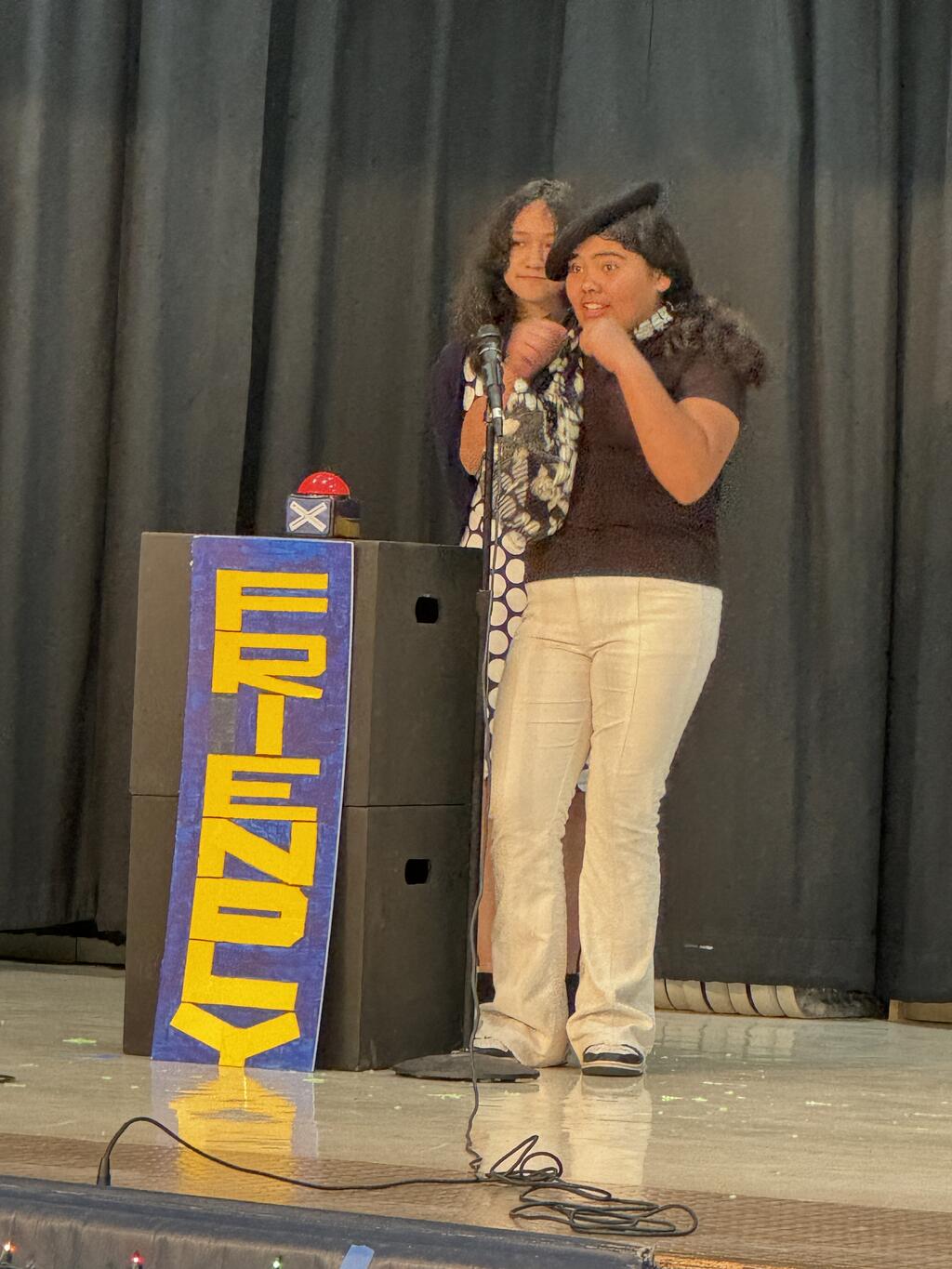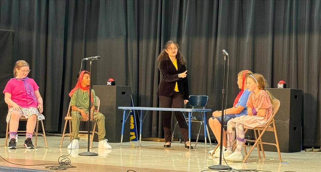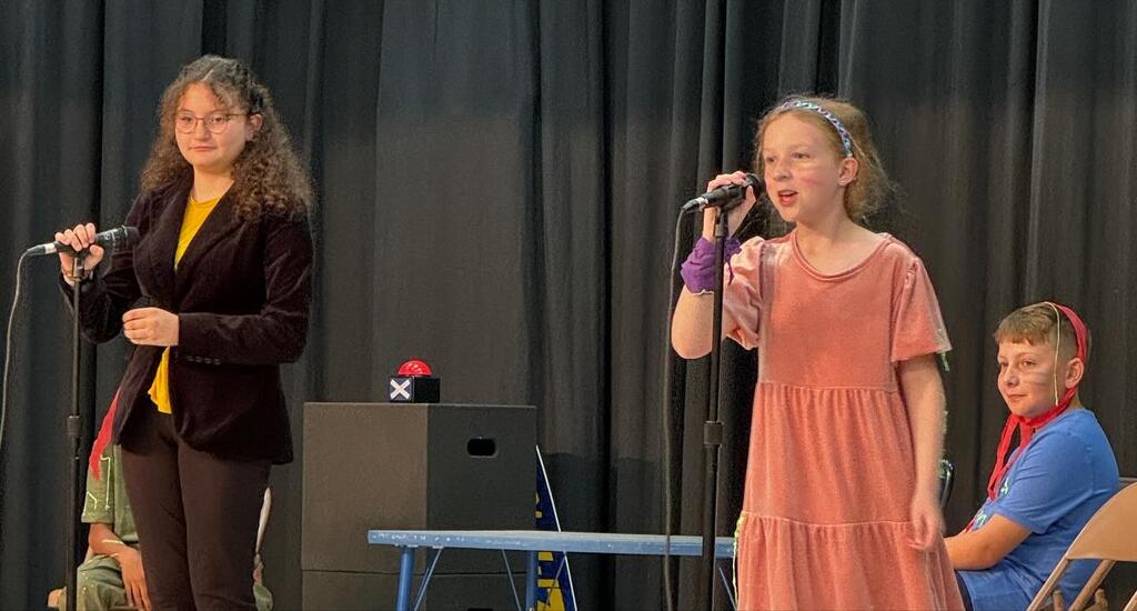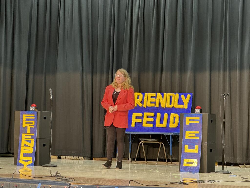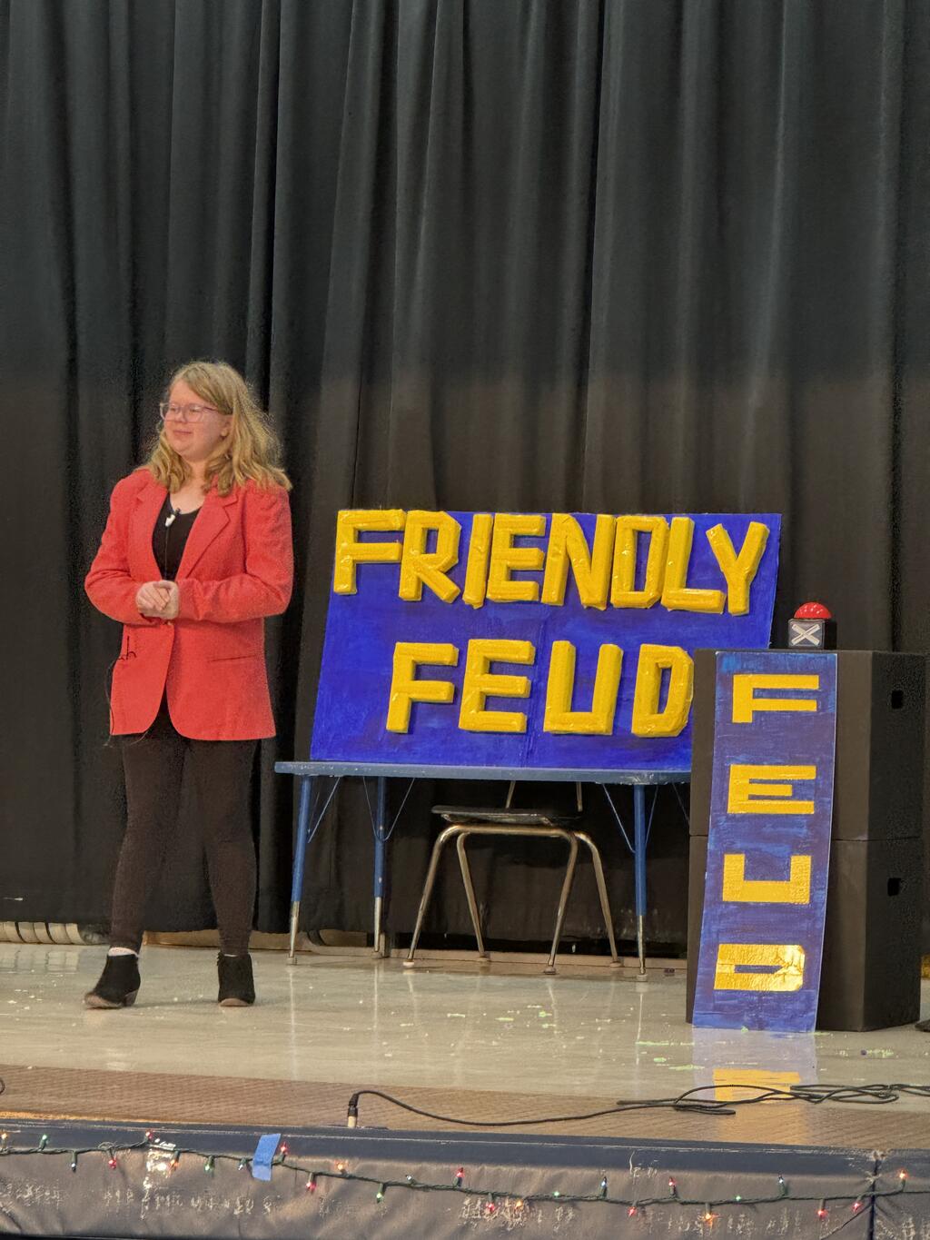 The play called "The Friendly Feud", takes place in an elementary school plagued by what teachers describe as an escalating “student feud,” four students find themselves in the principal’s office after a “Rainbow War” happened on the playground. In order to discover who is at fault, the principal decides to play a game with the students, who are then whisked into a tv studio and onto the sound stage of the game show, “The Friendly Feud.” As the game starts heating up, the students discover the real cause of the feud: miscommunication and misunderstanding.